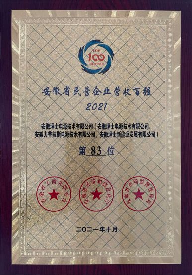 10月20日,安徽省工商聯、省經信廳、省市場監管局聯合舉辦2021安徽省民營企業百強發布會。安徽理士蓄電池(安徽理士、安徽力普拉斯、安徽理士新能源)位列營收百強第83位和制造業綜合百強第38位。